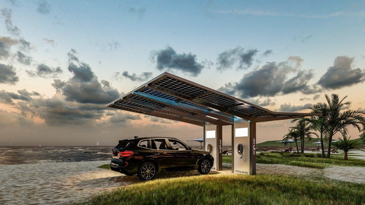 Eine Referenz für unsere solargestützten Ladestationen einseitig auskragend